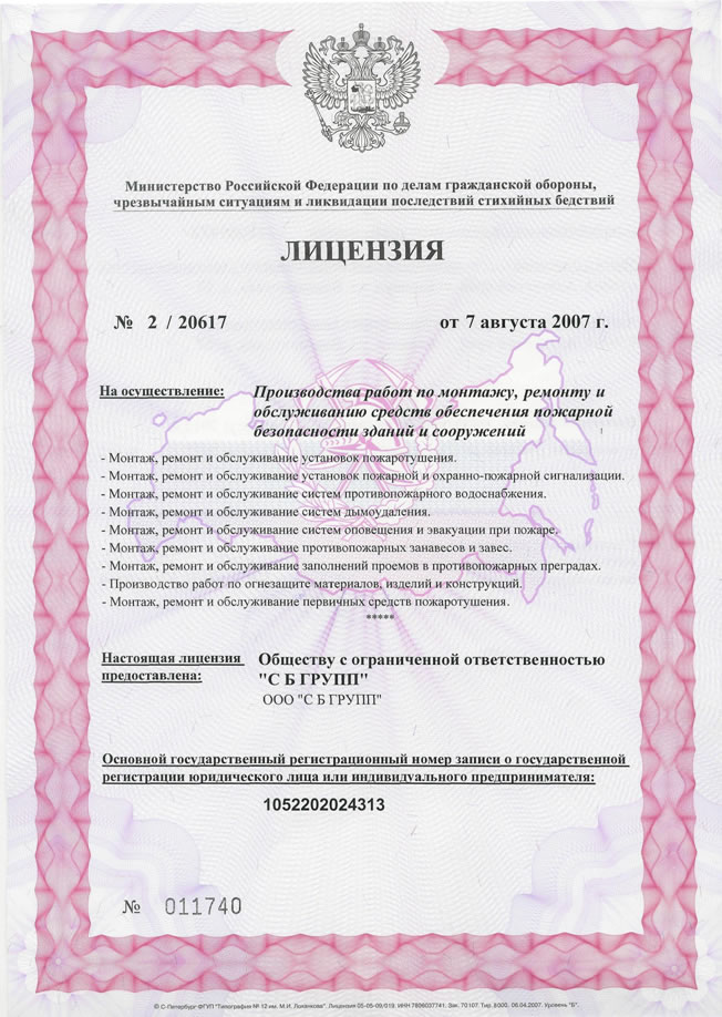 Лицензия МЧС![]() Лицензия Министерства Российской Федерации по делам гражданской обороны, чрезвычайным ситуациям и ликвидации последствий стихийных бедствий на производство работ по монтажу, ремонту и обслуживанию средств обеспечения пожарной безопасности зданий и сооружений № 2 / 20617 от 07 августа 2007 года. |